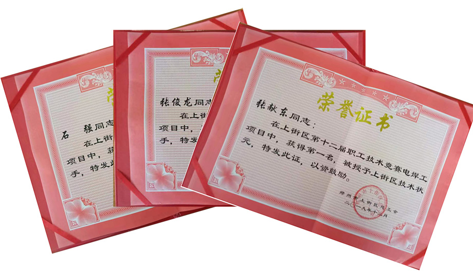 为贯彻党的十九大精神,加快培养高素质的技术型、技能型和知识型职工队伍,上街区第十二届职工技术竞赛在全区各级工会组织和广大职工的积极参与下,经过两个月的选拔、竞赛,最终36名选手分别荣获“技术状元”和“技术能手”称号。郑州利盈娱乐机械股份有限公司职工张献东、张俊龙、石强3人作为电焊工技术职工分别被授予“技术状元”和“技术能手”称号。