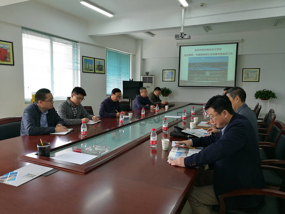 河南农业大学机电工程学院刘海涛书记、王万章教授一行5人到访郑州利盈娱乐机械开展深入合作,共促粮食干燥产业发展
