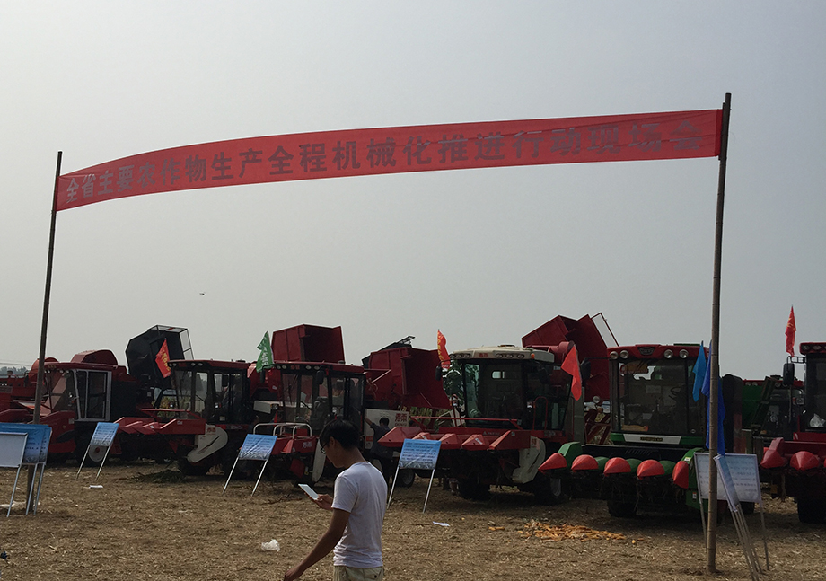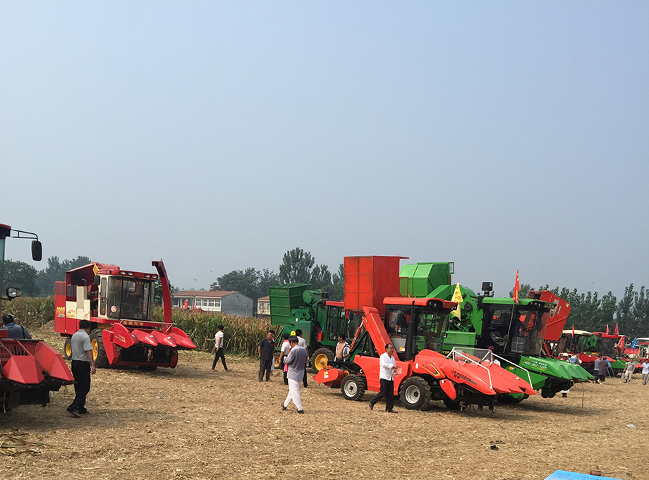 当日上午,与会人员到宁陵县赵村乡周式碑村农机示范基地实地参观了全省三秋生产机械化作业现场,观摩了来自省内外48个生产厂家的124台农机具的玉米机收、粮食烘干、秸秆还田、土地深松、花生收获等作业演示,并不时询问和了解各机械设备的工作原理及推广情况。